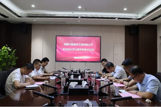 张富园对公路学院在科学创新、人才培养等多方面取得的成就给予高度赞扬,他简要介绍了公司在校企合作、科研成果转化等方面取得的成绩和面临的难点,希望与公路学院在人才输送、科研项目等诸多领域交流合作,共同推动高原地区交通事业发展。
