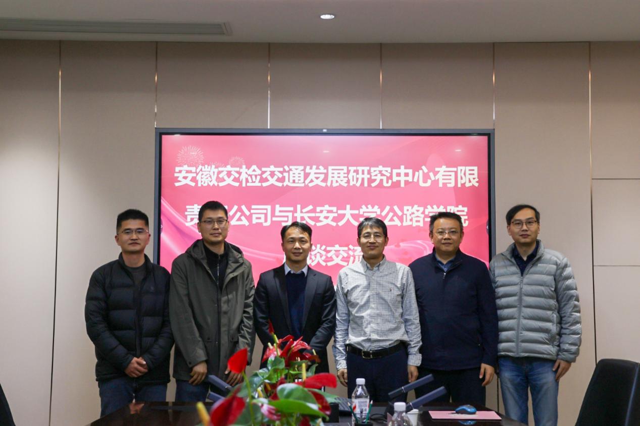安徽交检交通发展研究中心有限责任公司事业发展中心副主任张恒、检测一部副主任吕晓飞,公路学院学科与专业发展中心副主任王晓明、科研实验主管张晔、学生工作办公室主任卢毅等参加座谈。