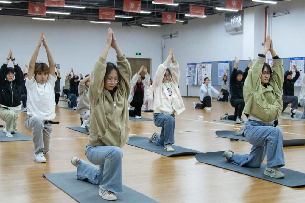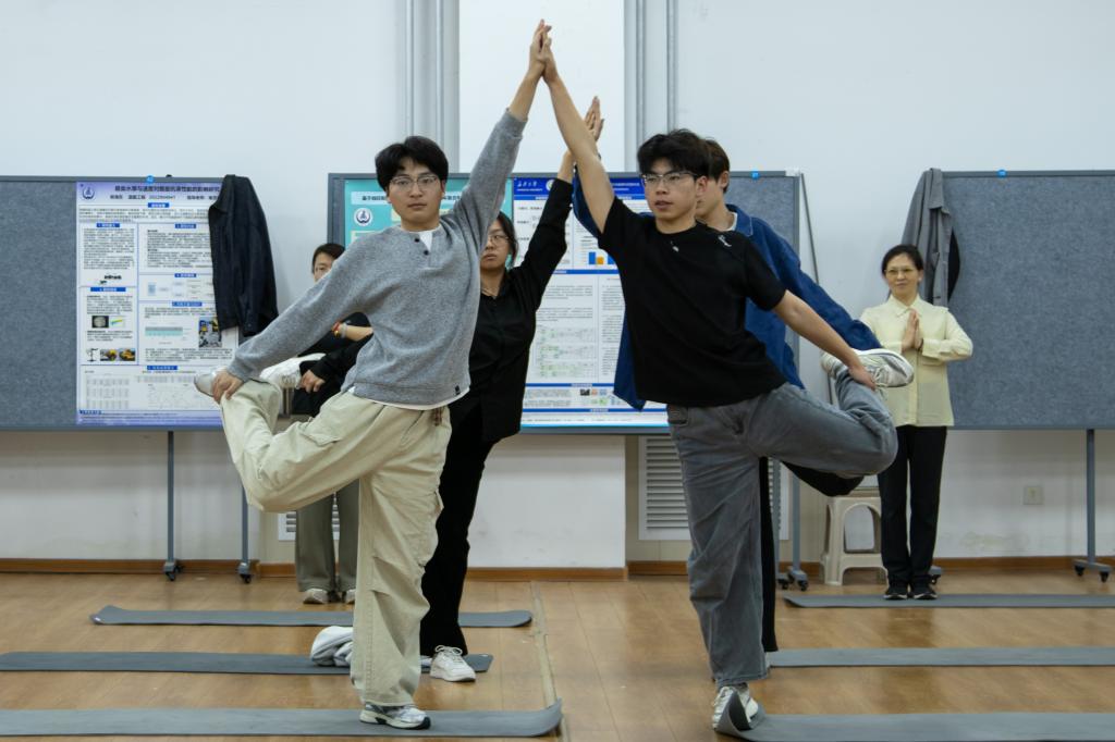 备赛期间,学院代表队全体成员以高度的集体荣誉感和严谨认真的态度投入训练。队员们相互鼓励、彼此帮扶,从单个动作的精准到位,到整体套路的行云流水;从音乐节奏的完美契合,到精神面貌的昂扬自信,每一处呈现都凝聚着无数汗水与心血。队员们在日复一日的训练中,不仅提升了瑜伽技艺,更锤炼了坚韧意志,凝聚起强大的团队向心力。