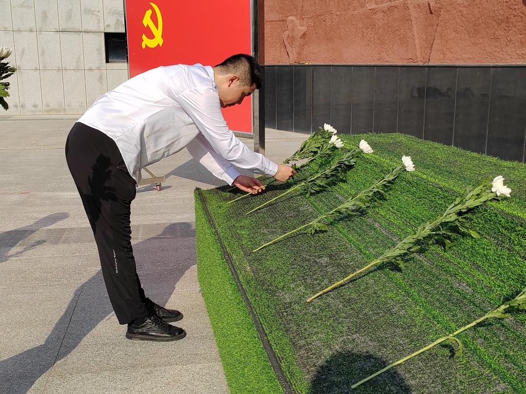随后,全场静默肃立,向为国家独立、民族解放献出宝贵生命的革命先烈默哀,以此寄托深切追思与崇高敬意。默哀结束后,党员代表们深情分享了安葬在烈士陵园的抗战烈士的英雄事迹,一个个鲜活的故事、一段段感人的过往,让在场人员深刻感悟到革命先辈的坚定信仰、无畏勇气与家国情怀。分享过程中,同志们郑重向烈士纪念碑敬献鲜花,洁白的花束不仅承载着对英烈的深切崇敬,更象征着革命精神代代相传、永赓不辍。
